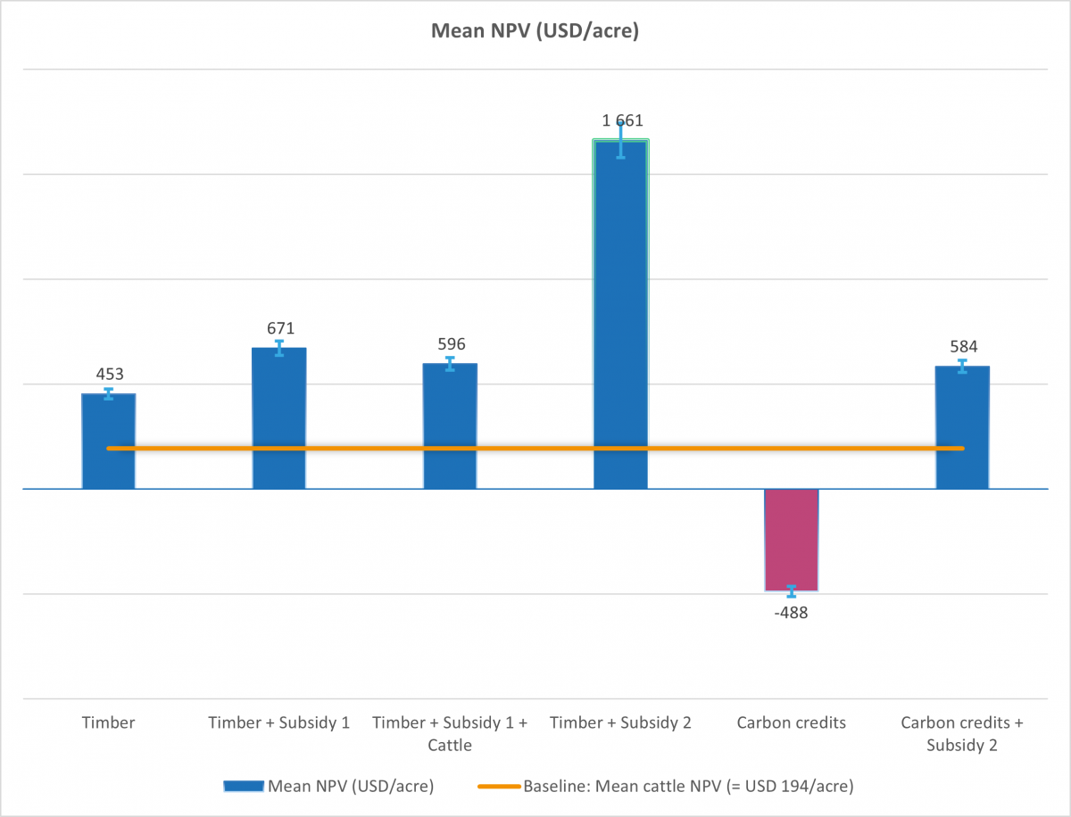 Figure 2 NPV potential (USD/acre) across multiple business strategies for private land (adapted from Goldstein et al., 2006, standard error (5%) applied)There are also potential environment social governance (ESG) and regulatory risks down the road, for all direct and indirect investors and facilitators (looking at you, insurance). For example, the EU has proposed the Nature Restoration Law, recognising that “Every €1 invested into nature restoration adds €8 to €38 in benefits”, putting biodiversity at the same commitment level as carbon emissions (European Commission, 2023). This is in direct relation to the still–recent international agreement to implement the Kunming-Montreal Global Biodiversity Framework from COP15 (European Commission, n.d.), resulting in a surge in country-level targets and financing schemes for biodiversity. You can track EU-level biodiversity strategy actions on the European Commission’s dedicated tracker.